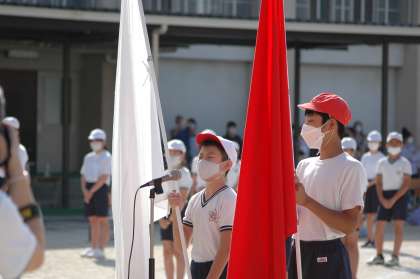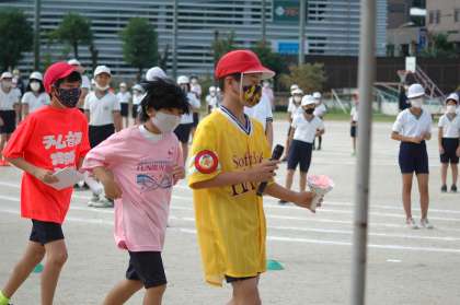 開会式の様子です。4〜6年生の代表委員会の子どもたちが企画・運営を行いました。はじめの言葉,開会宣言,スローガン発表など代表委員として素晴らしい姿を見ることができました。