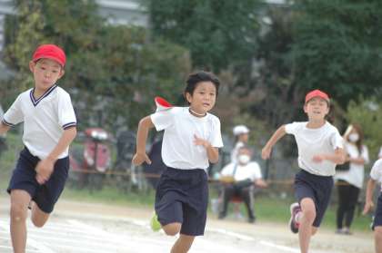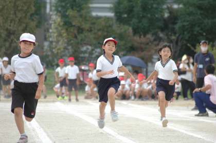 3年生は初めての100m走でした。スピードを落とさずにカーブをうまく走れるようにうまく体を使って走っていました。4年生は,カーブでさらにスピードに乗って走れている人もいました。