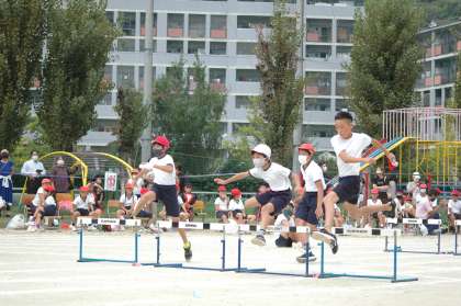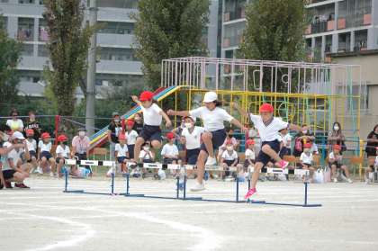 ハードル走の続きです。4年生から6年生の様子です。スピードがあって迫力がありました。