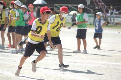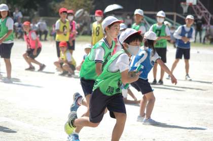 高学年リレーの見どころは,スピードに乗って走る姿はもちろんですが,やはり「テイクオーバーゾーン」でのバトンパスになってきます。ここで大きく勝敗が左右されてきます。練習の頃は,バトンを落としたり,うまく渡せなかったこともありましたが,本番では見事なバトンパスを見せてくれました☆