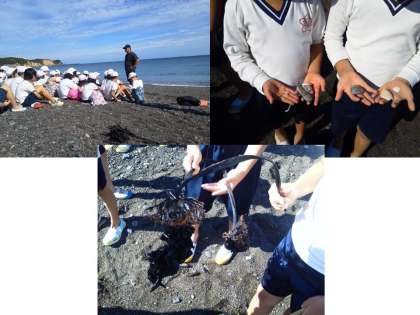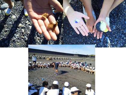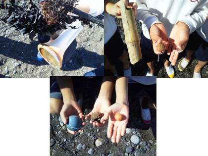 海には,いろいろなゴミがあり,それが浜辺に流れ着くことを体感します。