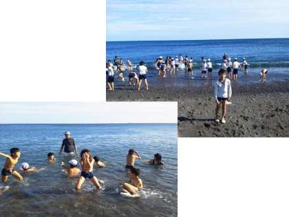 子どもたちは,海を目の前にして,ここで泳ぎたい気分になっていると思います。