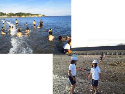 子どもたちの「キャッキャ」「きゃっきゃ」という楽しそうな叫び声がしています。とっても気持ちよさそうに友だちと波遊びを楽しんでいます。