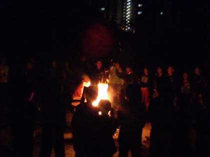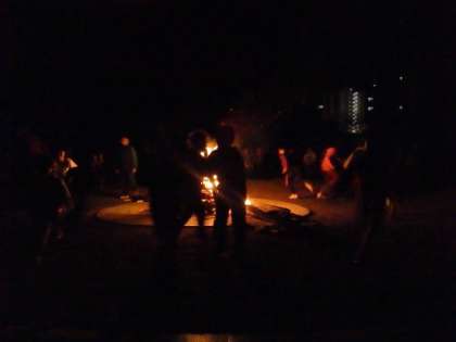 勢いよく燃えるファイヤーを囲んで,楽しくおどったり,歌ったり,ゲームをしたりしました。