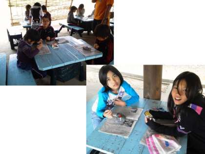 大野浜で拾ってきた石にこの3日間の思い出を描きます。