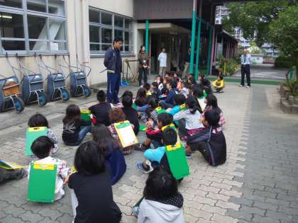 午前9時に学校を出発し,午前12時には学校にもどってきて,学校で給食を食べる予定です。