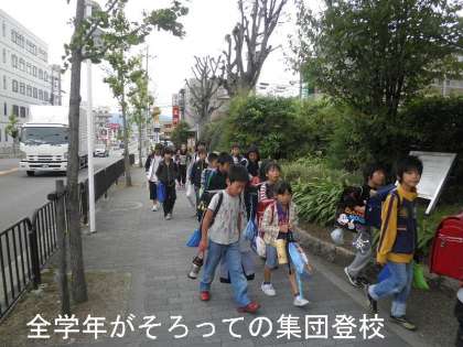 全校そろっての集団登校
