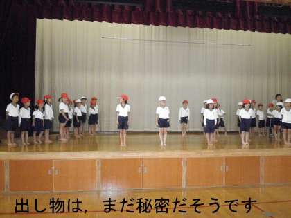 出し物は,・・・今のところ秘密だそうです。動物がいっぱい出てくるようです。劇の中で「側転」も披露するようですよ。楽しみですね。