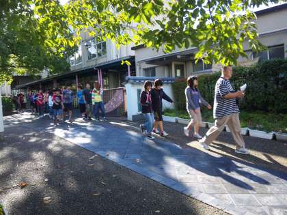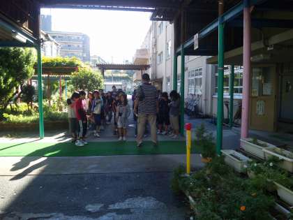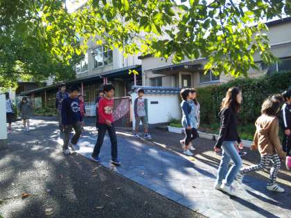 6年生は,京都劇場へ向けて午前8時30分に学校を出発しました。