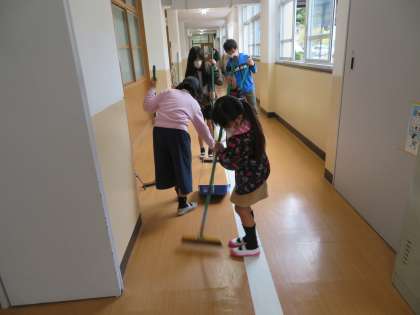 そうじの最後には,6年生が中心となり,しっかりとふりかえりを行っています。