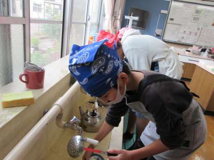 グループで協力して,ご飯とみそ汁の調理実習に取り組みました。