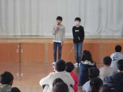 11月の児童集会を行いました。各委員会からの連絡を聞いたあと、金曜日のたてわりラリーに向けて、各グループでめあてを話し合いました。