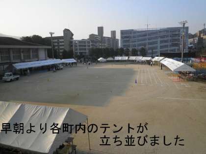 本日,醍醐西学区民の運動会が開催されます。早朝より各町内のテントが立ち並び,準備されています。