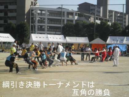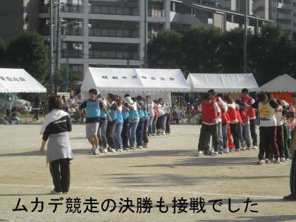 午後からは,決勝種目が多く入ってきます。「綱引き」「ボール運びリレー」「ムカデ競走」「レインボーライン」など。