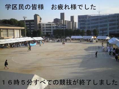 今年度も大変盛り上がった学区民運動会でした。16時5分に,大きなけがや事故もなく,無事終了しました。