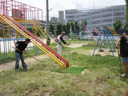 少年野球チームが草刈り!!