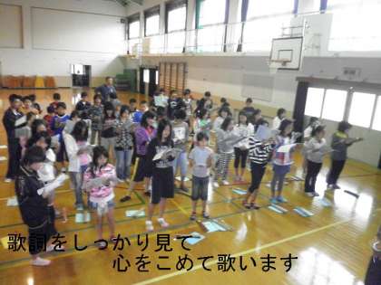 今日は,体育館に入ってスクールサポーターの先生のピアノ伴奏で歌ってみましたが,まだまだ合格点はあげられません。これから気合いを入れて練習していきます。