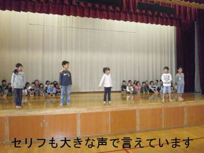 1年生は,体育館で学芸会の練習を元気にがんばっていました。