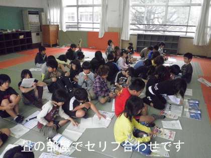 そこで,3年生は,学芸会に向けてセリフ合わせをしていました。配役が決まったばかりなので,台本をみながら,ゆっくり大きな声で言えるように練習していました。