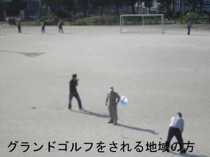水はけのいい学校の運動場では,早朝より地域の方がグランドゴルフをされています。