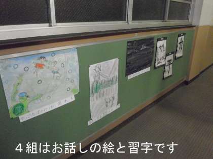 明日の自由参観に向けて,各担任が暗くなってから,教室前や階段の掲示板をはりかえています。図工の作品あり,社会の調べ学習の新聞あり,そして,宿泊学習の思い出の写真などにはりかえています。