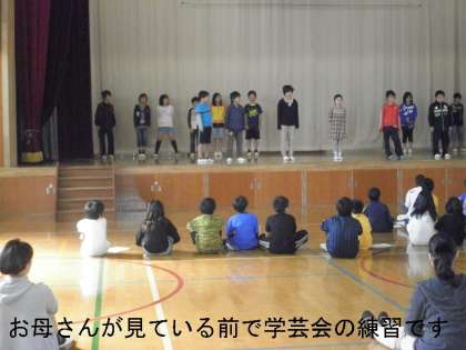 自由参観日の1時間目は,学芸会の練習が入っています。お母さん方が参観しておられる前で,劇の練習をしています。ちょっといつもよりは,緊張気味です。