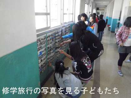 自由参観日に合わせて,今日から「修学旅行の写真」がはりだされました。子どもたちは,運動場に出ることもなく,写真を食い入るように見ています。