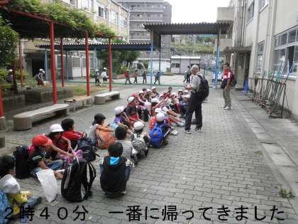 2時40分,2年生が一番に帰ってきました。そして5分後の2時45分に1年生が帰ってきました。