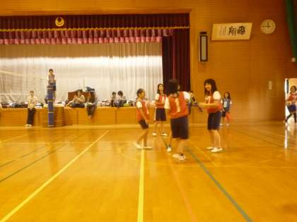 帰り際,「先生,(学校に)帰ったら,バレーの練習したい!」という子どもたち。学校に戻ると,体育館でPTAバレー部の方々が練習をされていました。事情を話すと,「一緒にやりませんか」というPTAバレーの方々。そのご好意で1時間ばかり一緒に交流練習させていただきました。PTAバレー部の皆さんありがとうございました。