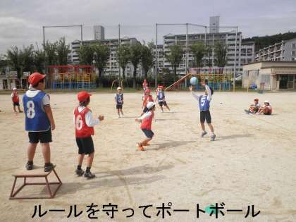「ポートボール」をしていました。パスをできる限りまわして,しっかりルールを守れてゲームをしているので,観ていても楽しそうです。