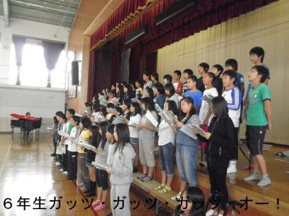 合唱の声がまだ小さく,先生にはっぱをかけられています。今日は,「ガッツ」も注入してもらってがんばりました。