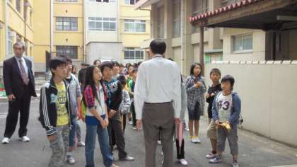 正面玄関のところで,今日の学習についての大まかな説明を受け,下駄箱に靴を入れて,館内に入りました。