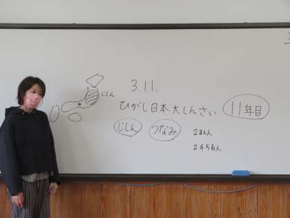 1・2年生でも「東日本大震災」のお話を聞きました。そして,地震が起きた時,命を守るために自分たちがどのように行動すればいいのかを確認し,シェイクアウト訓練に臨んでいました。