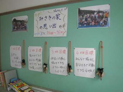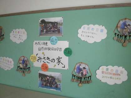 4年生の教室には,いまだに「みさきの家」で各班がもらった「木メダル」が飾ってあります。また,ローカには,写真が掲示してあります。