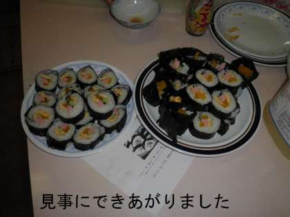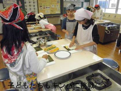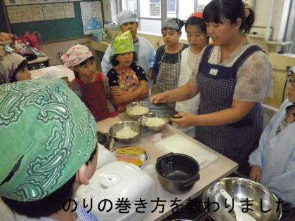 子どもたちは,出来上がったのり巻きの切り口を見て,「わあ!きれい!」と驚きの歓声をあげていました。