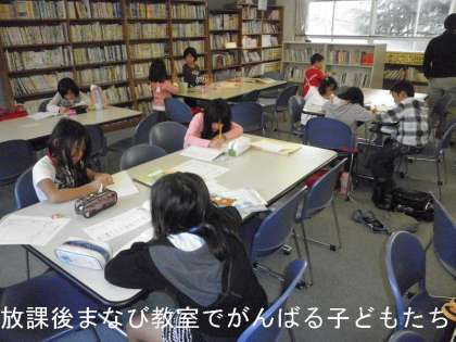 後期に入って1年生が参加しています。前半の低学年の子どもたちは,人数が増えました。みんな楽しく宿題をしています。しんどい勉強もみんなでやると楽しくなりますね。がんばってね。