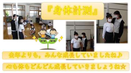身体計測では,「あっ!!身長が伸びてる☆彡」っと