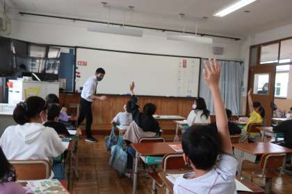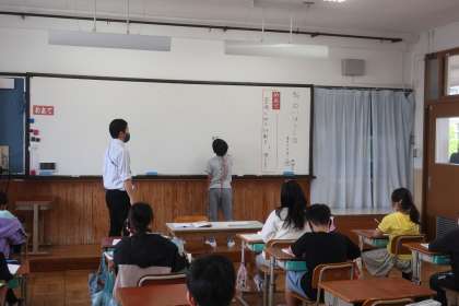 物語に登場する人物の行動を確かめ合いました。はりきって元気に自分の考えを発表していました。