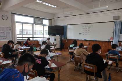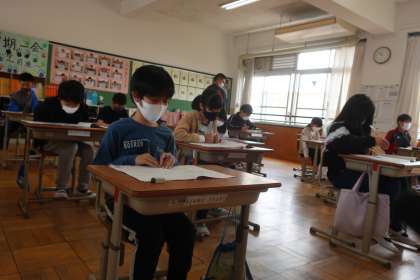 国語,算数,理科の全国学力調査です。各教科45分間,最後までじっくり取り組んでいました。