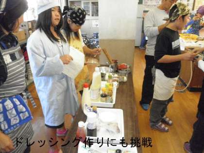 「ゆでる料理」に挑戦です。いろいろな野菜をゆでて,各班でオリジナルメニューを作りました。ドレッシングも手作りです。