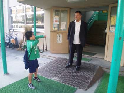 午前9時30分から池田小学校の常設相撲場で「京都市小学校部活動全市交流会(相撲の部)」が行われます。本校の相撲部も参加するために,午前8時に学校に集合して,池田小学校に向けて出発しました。
