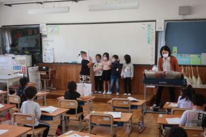 「ぞうさん」や「チューリップ」など,歌詞の表す情景を想像しながら,表情豊かに歌っていました。