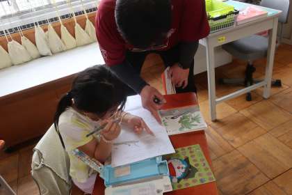 国語科「きつつきの商売」の学習です。今日は,音を聞いた野ウサギや野ねずみの気持ちを考えました。物語に出てくる言葉一つ一つをていねいに読み返しながら,登場する生き物になりきって考えていました。