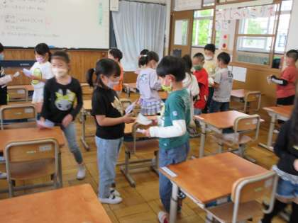 1年生は,国語の時間に作った名刺を生活科の時間に交換しました。