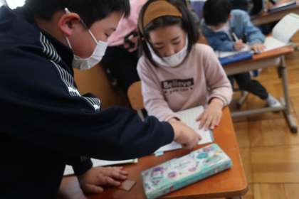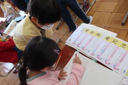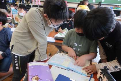 4年生に自主学習の仕方を教わりました。取り組み方について教わった子どもたちは,自分のノートを広げてさっそくトライ!自主学習の取組が楽しくなるといいですね。
