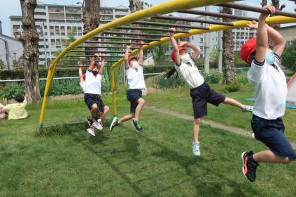 体育の学習です。総合遊具やブランコ,うんていの安全な使い方を学びました。