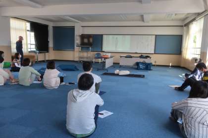 一つ目は,心肺蘇生法の手順について,DVDを視聴しながら確認しました。