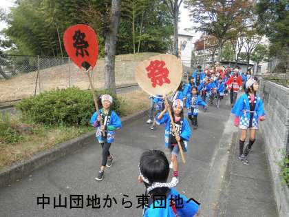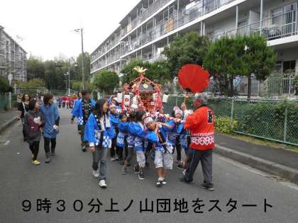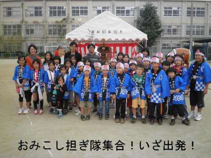 子どもみこし隊が学校に集合し,いよいよスタートです。
