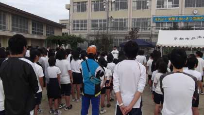 今日は,池田小学校で支部陸上記録会が行われました。本校からは4年生以上のお友だちが50m走・800m走に参加しました。
