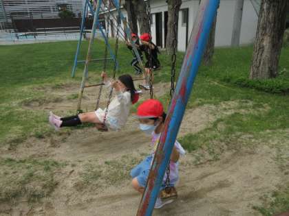 中間休みは,水をあげた後,ルールを守りながらブランコで遊びました。